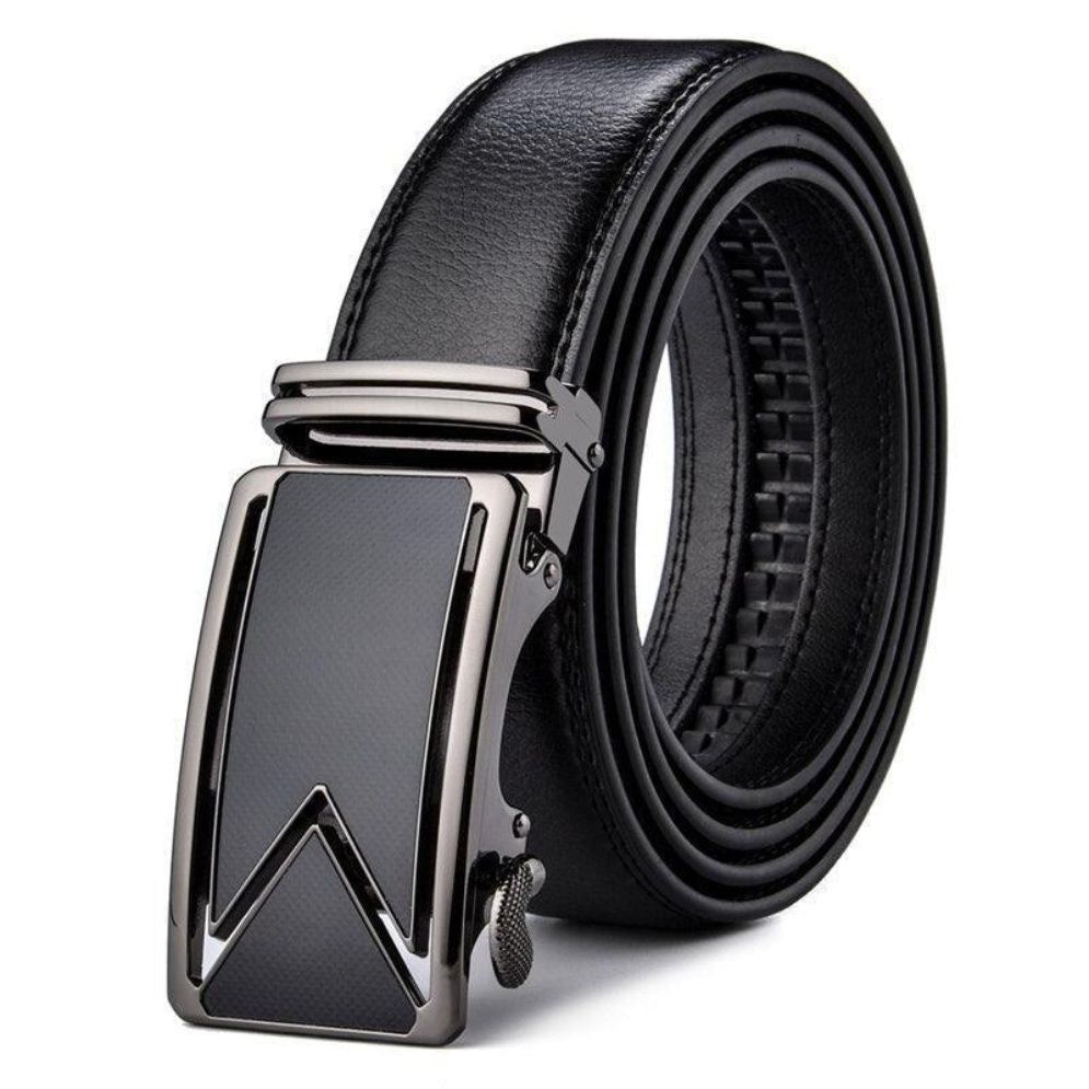 Cette ceinture pour homme est en cuir avec une boucle automatique réglable, permettant un ajustement précis à la taille.