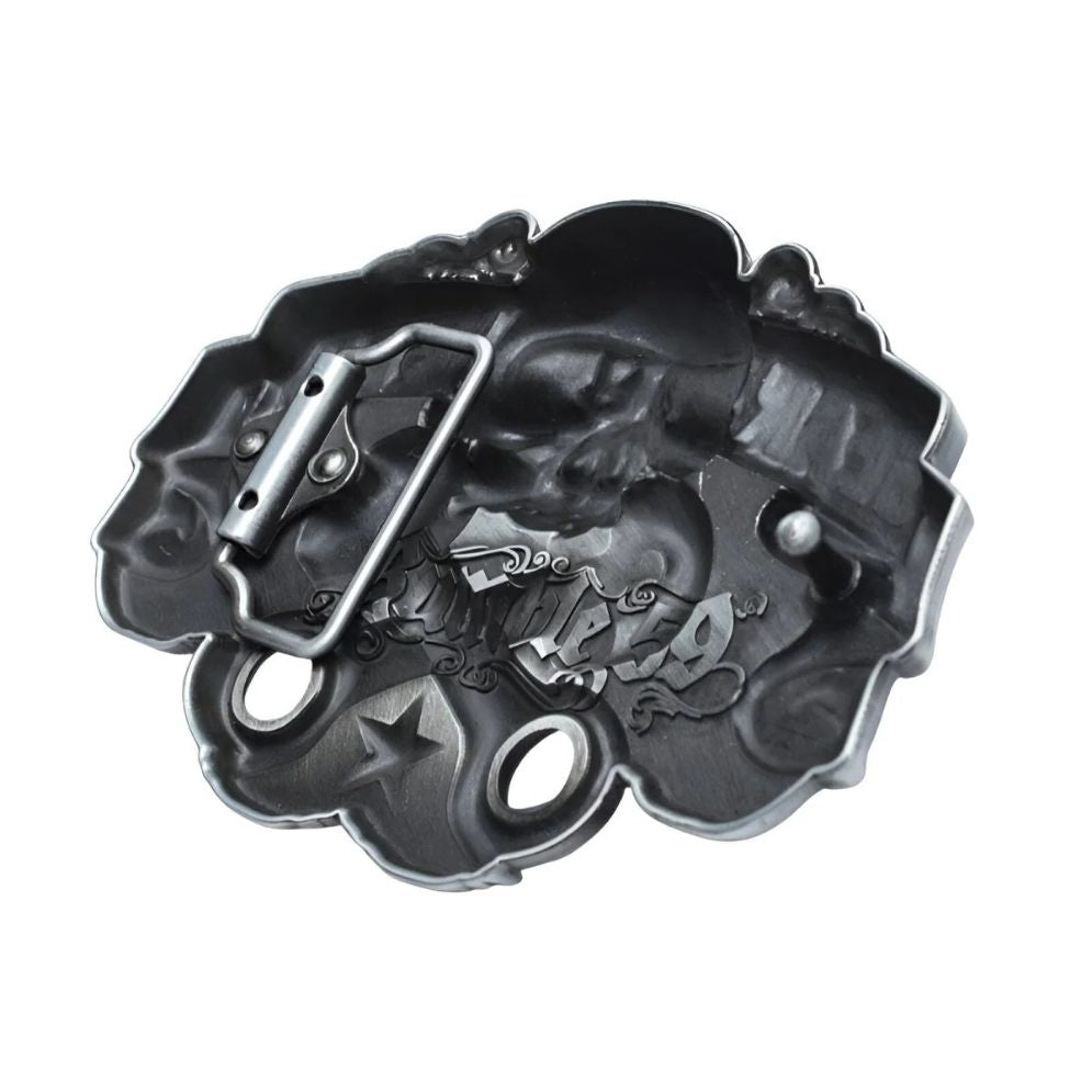 Cette boucle métallique pour ceinture est un modèle typique de l'esprit motard , plein d'audace.
